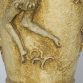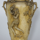 Ânfora de Cerâmica - Brasil, Século XX. Ânfora de cerâmica monocrômica creme sob verniz, modelada no formato de balaústre e ornada em relevos com elementos da videira e duas femininas opostas com torço desnudo e tocando harpa. Pescoço estreito e borda de contornos irregulares com três insignificantes trincos. Na parte inferior do corpo provável assinatura, ilegível; 37,3 cm de altura total. Uma das figuras apresenta perda da mão.