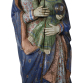 Nossa Senhora com Menino. Madeira policromada - Índia Portuguesa, século XVI/XVII. Escultura de madeira policromada representando Nossa Senhora com Menino. Ela de pé e descalça sobre nuvem, cabelos longos encobertos por manto azul de interior rosé, com delicados movimentos, que se alonga até os pés. Túnica verde profusamente ornada com elementos florais. Rosto pulcro, olhar fixo no horizonte, segurando com ambas as mãos Menino Jesus com esfera armilar na mão esquerda e a direita em posição de benção; 93 cm de altura total, com resplendor de 12 cm de altura. Apresenta rachadura vertical.