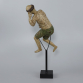 Franciscano. Imagem de madeira entalhada e policromada representando figura de Franciscano em repouso. Sentado, torso desnudo, com ambas pernas dobradas, mão direita sobre abdômen e braço esquerdo dobrado com mão apoiando a cabeça. O todo suspenso por estrutura metálica patinada de preto; 50 cm de altura a Imagem e 62,3 cm de altura total. Brasil, séc. XVIII. Origem: espólio de Edgar Clat Gaspar.