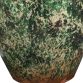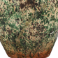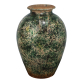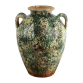 Ânfora. Portugal, Século XIX. Ânfora de faiança. Corpo bojudo e volumoso com duas alças verticais de secção arredondada. Gargalo curto, levemente côncavo, terminando em borda revirada. Superfície integralmente recoberta por vidrado espesso em tons de verde sobre fundo terroso, 61 cm de altura total e 45,5 cm, de alça a alça. Apresenta trincado que, muito provavelmente, afetou somente o vidrado. Restaurado profissionalmente, inclusive com utilização de grampos estabilizadores. Provavelmente proveniente da região do Alentejo ou norte de Portugal.