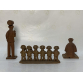 Autoria desconhecida - Arte Popular. Conjunto de esculturas sobre bases retangulares, composto de:Grupo escultórico, de barro cozido, com seis músicos e seus respectivos instrumentos musicais, 14,5 cm de comprimento e 7 cm de altura total; Homem com feixe de lenha na cabeça, de madeira, Mulher Rendeira, de madeira; 8,5 cm de altura.