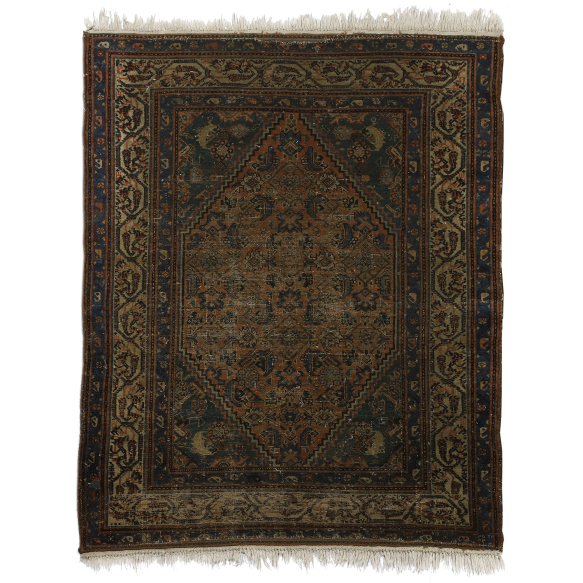 Tapete oriental - Pérsia, século XX. Tapete Hamadan, ponto em nó feito à mão; 1,44 m x 1,09 m ou 1,56 m².Origem: espólio de Cárbia Sabatel Bourroul e José Celestino Monteiro de Barros Bourroul.