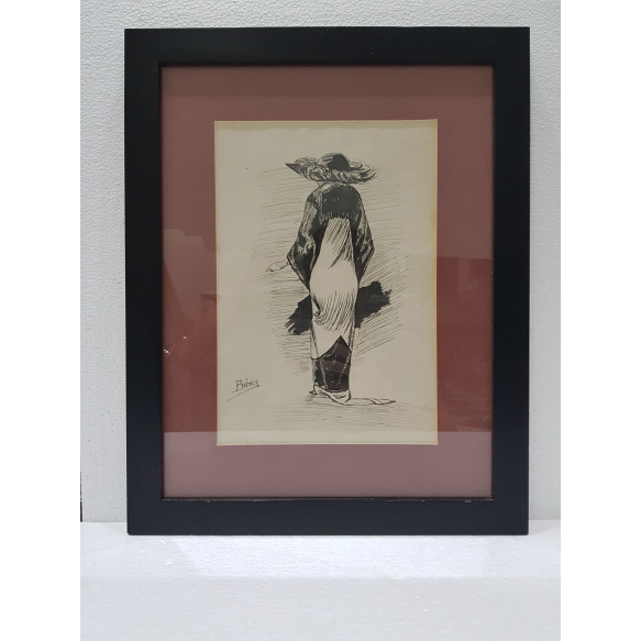 Belmiro de Almeida. Figura Feminina com Chapéu. Nanquim e aquarela, 30 cm x 20 cm. Assinado embaixo à esquerda: Belmiro. Origem: ex-coleção Maria Helena e Eldino F. Brancante.