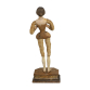 Nossa Senhora das Dores. Imagem de vestir com armação em madeira e corda para flexibilização dos membros quando da colocação das roupas e adereços. Cabeça, mãos e pés ricamente esculpidos em madeira policromada. Belo coque na cabeleira; 38 cm de altura total. Europa, séc. XVIII.