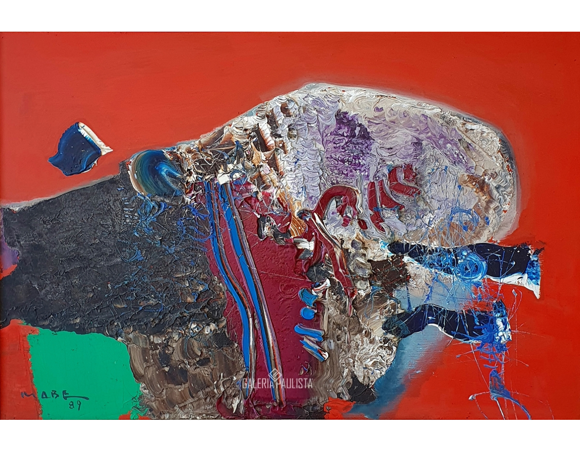 MABE "S/T" Oleo Sobre Madeira -Med 40x29 cm (Obra) 63x50 cm (Mold) -Assinado e Dat 89 no CIE e Verso -Acompanha Certificado do Instituto Mabe.