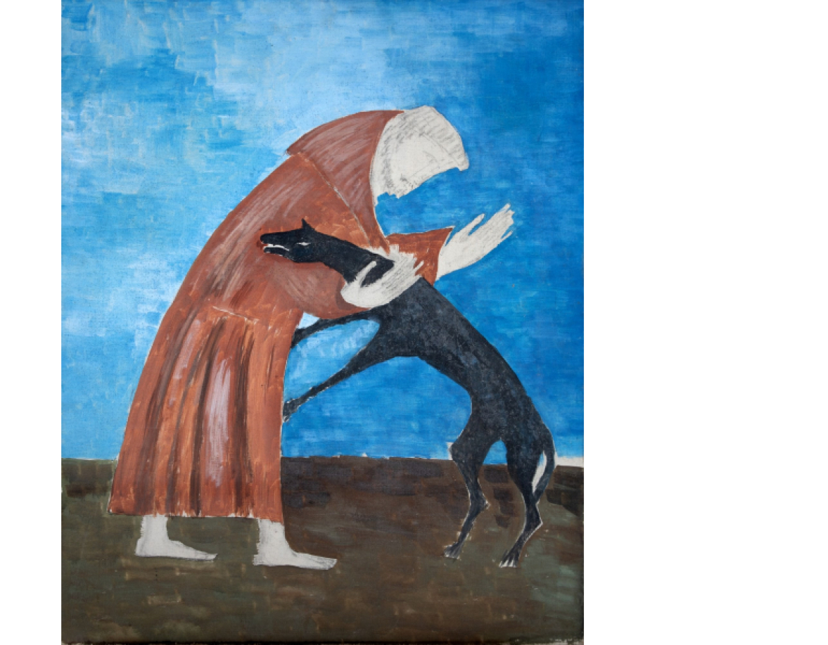 Bruno Giorgi - São Francisco e o lobo de Gubbio - 100 x 80 cm - Têmpera sobre tela - Assinatura canto inferior direito e Data década de 40 - Fase que o artista convivia diariamente com o Mestre colorista Alfredo Volpi.