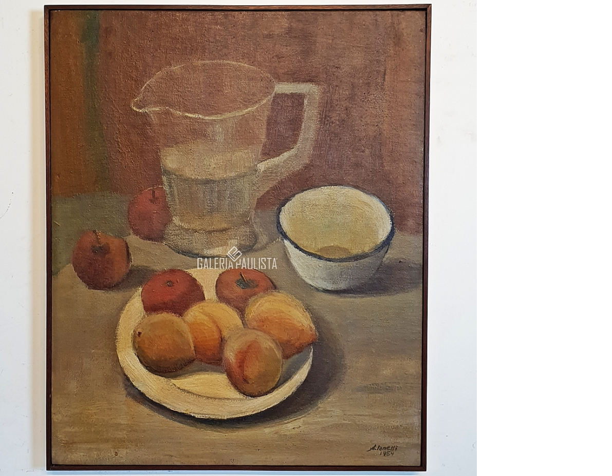 ARCANGELO IANELLI "Jarro e Frutas -1954" Oleo Sobre Tela -Med: 70 x 60 cm -Assinado e Dat 1954 no CID -Reproduz no Catalogo do James Lisboa Leilã.
