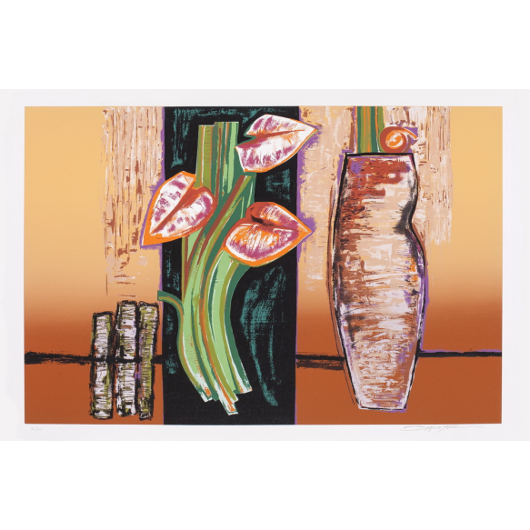 Sérgio Ferreira - Flores - 66 x 96 cm - Gravura sem Moldura - Ass. Canto Inferior Direito - Exemplar H.C - Apresenta sinais de oxidação e pequenos amassados nas bordas