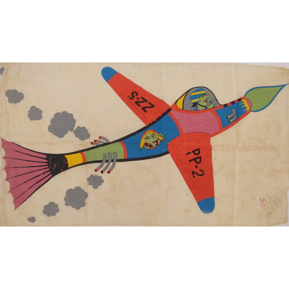 Roberto Magalhães - Avião - 38 x 66 - Serigrafia Sobre Tecido - Ass. Canto Inferior Direito e Dat. 1979 - Exemplar 157/198 - Apresenta manchas e dobras no trabalho