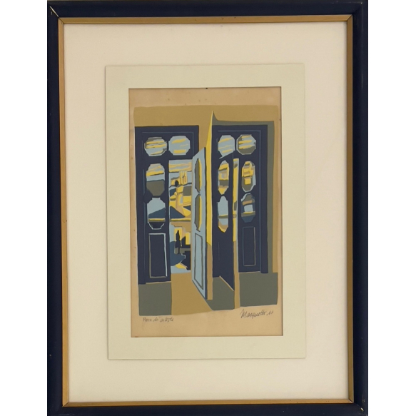 Ivan Marquetti - Porta e Paisagem de Ouro Preto - 40 x 25 cm - Gravura Com Moldura - Ass. Canto Inferior Direito e Dat. 1967 - Exemplar P.A - Bom estado