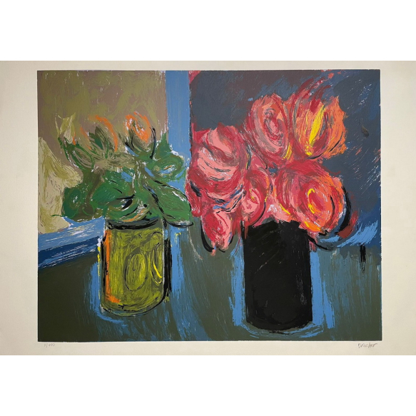 Carlos Bracher - Flores - Medidas 50 x 70 cm - Gravura Sem Moldura - Assinado no Canto Inferior Direito - Exemplar 49/100 - Apresenta pequenos amassados nas bordas