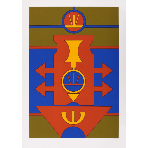 Rubem Valentim - Emblemas - Medidas 100 x 70 cm - Gravura Sem Moldura - Assinado no Canto Inferior Direito e Datado 1989 - Exemplar 79/140 - Apresenta sinais de oxidação e pequeno sinal na parte inferior da obra