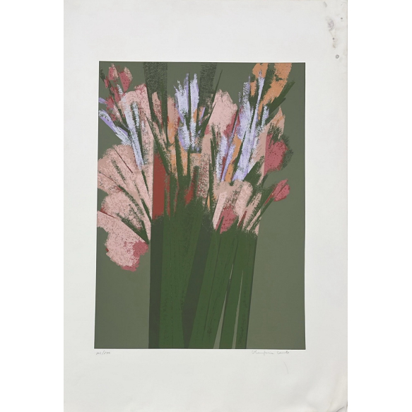 Olímpia Couto - Flores - Medidas 100 x 70 cm - Gravura Sem Moldura - Assinado no Canto Inferior Direito - Exemplar 107/170 - Apresenta manchas, sinais de oxidação e amassados nas bordas