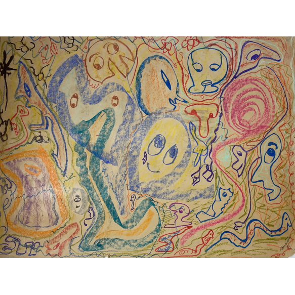 Sônia Costa - Figuras - Medidas 55 x 72 cm - Giz de Cera Sobre Cartão - Sem Moldura - Assinado no Canto Inferior Direito - Apresenta pequenos rasgos nas bordas