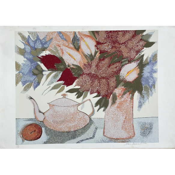Chico Ferreira - Flores - 70 x 100 cm - Gravura sem Moldura - Ass. Canto Inferior Direito - Exemplar 129/160 - Apresenta sinais de oxidação e pequenos rasgos amassados nas bordas