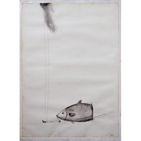 Fernando Cardoso - Sem Título - 66 x 48 cm - Nanquim Aquarelado sem Moldura - Ass. Canto Inferior Direito e Dat. 2000 - Apresenta sinais de oxidação e está colada em um cartão