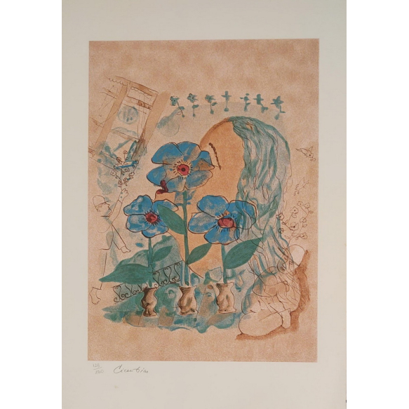 Cícero Dias - Composição Surrealista III(Anos 1930/1940) - 70 x 50 cm - Gravura Sem Moldura - Ass. Canto Inferior Esquerdo - Exemplar 123/150 - Apresenta sinais de oxidação