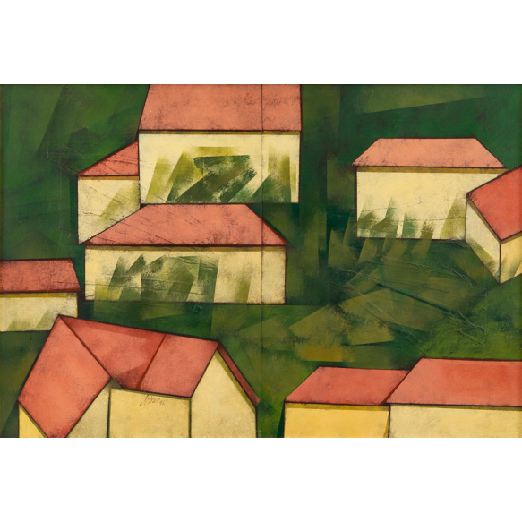 Carlos Scliar - Paisagem XXV e Paisagem XXVI - 75 x 110 cm - Vinil e Colagem Encerados Sobre Tela Colado em Madeira - Assinado no Canto Inferior Esquerdo e Datado 1986