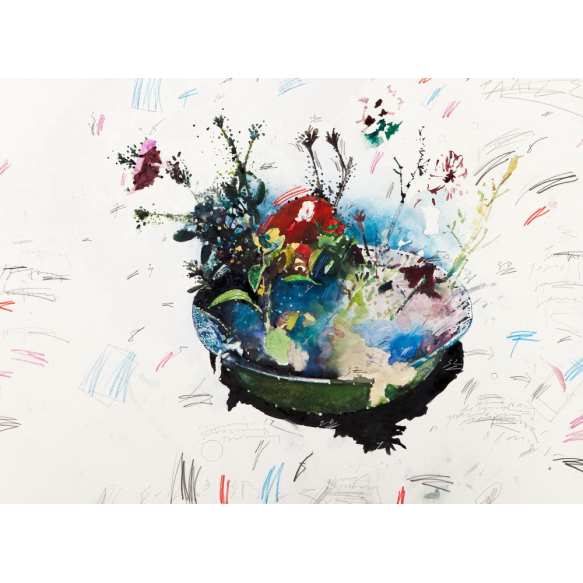 Sérgio Nunes - Anotações - Bacias com Flores e Ervas - Medidas 50,5 x 69 cm - Aquarela - Assinado no Canto Inferior Esquerdo e Datado 2013 - Esta obra está reproduzida no catálogo da exposição individual realizada pelo artista em Belo Horizonte/MG na Errol Flynn Galeria de Arte, Acompanha o catálogo da referida Mostra