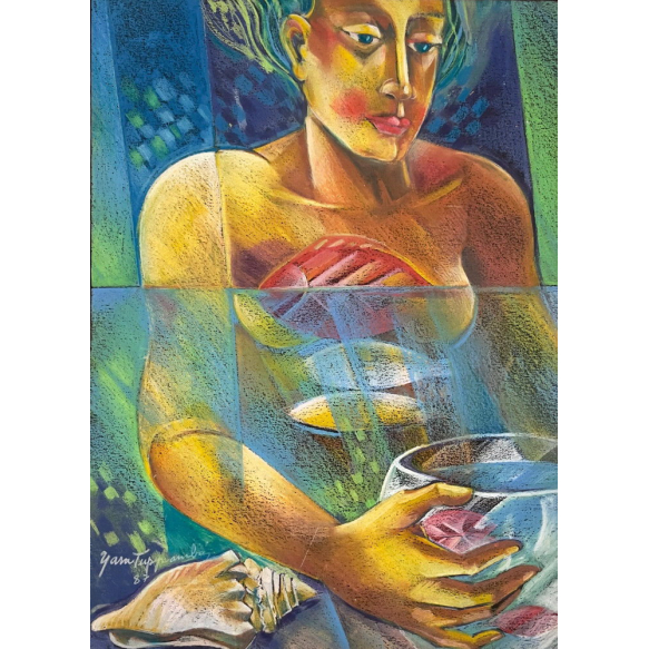 Yara Tupynambá - Meu Peixe Tem Olhos Azuis - 52 x 37,5 cm - Pastel à Óleo Sobre Cartão Colado Em Eucatex - Assinado no Canto Inferior Direito e Datado 1987
