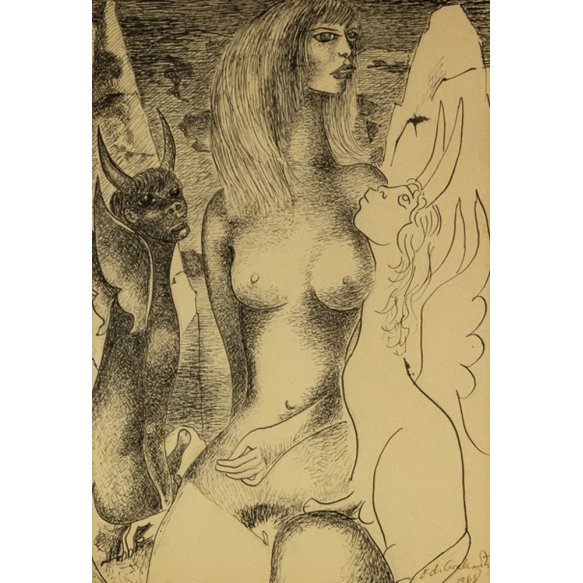 Emiliano Di Cavalcanti - Mulata – 29 x 20 cm – Nanquim Sobre Cartão - Ass. Canto Inferior Direito e Dat. 1968