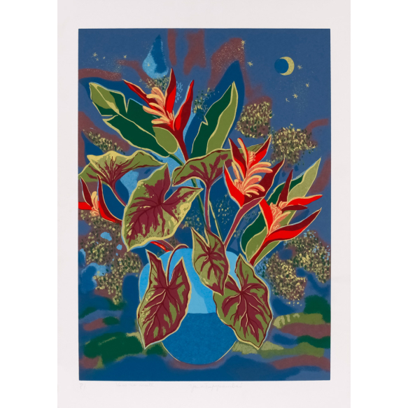 EspañolVaso na Noite – 70 x 50 cm – Gravura sem Moldura – Ass. PI – Exemplar 94/160 - Bom estado