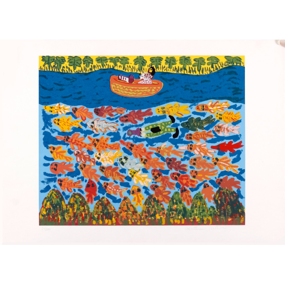 EspañolPescaria – 50 x 70 cm – Gravura sem Moldura – Ass. Canto Inferior Direito – Exemplar 80/200 - Bom estado
