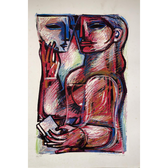 EspañolMulher com Máscara - 70 x 50 cm - Gravura Sem Moldura - Ass. Canto Inferior Direito e Dat. 1987 - Exemplar 88/90 - Apresenta sinais de oxidação nas bordas