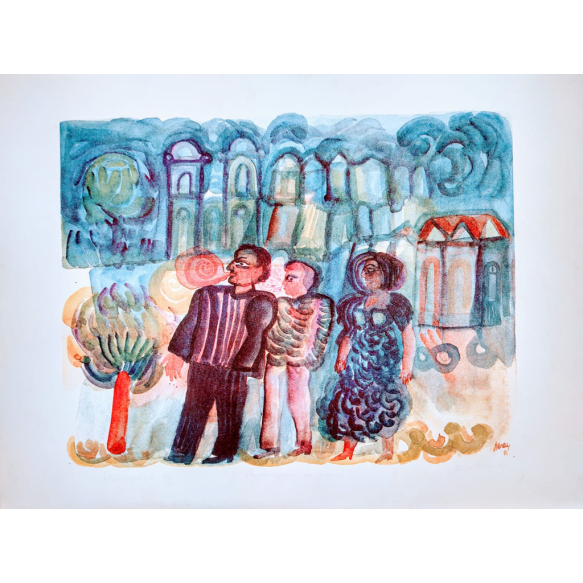 EspañolPaisagem na Praia - 48 x 65 cm - Gravura Sem Moldura - Ass. Canto Inferior Direito e Dat. 1989 - Exemplar 121/150 - Bom estado