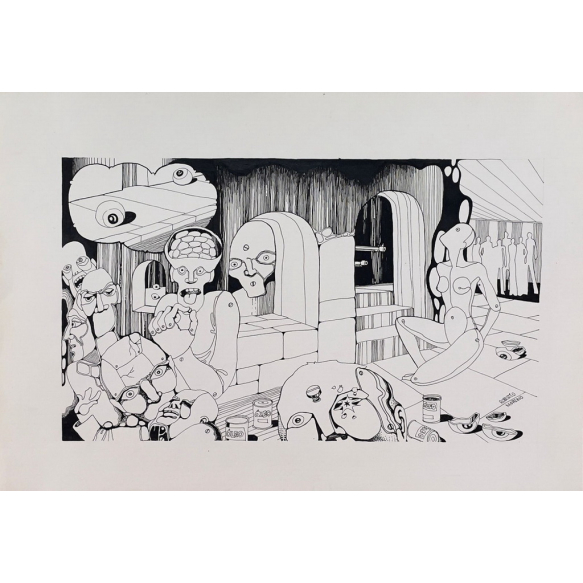 EspañolFiguras - 22 x 32 cm - Nanquim Sobre Cartão - Ass. Canto Inferior Direito