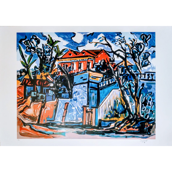 EspañolCasarão Vermelho - 72 x 100 cm - Gravura sem Moldura - Ass. Com Cachet - Exemplar P.A - Bom estado - Tiragem póstuma realizada em 2015 - Assinada pela Fundação Inimá de Paula - Bom estado