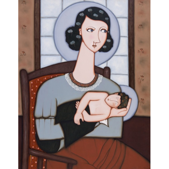 EspañolTony Lima - Madona com Menino – 90 x 70 cm – Óleo Sobre Tela – Ass. Canto Inferior Direito e Dat. 2009