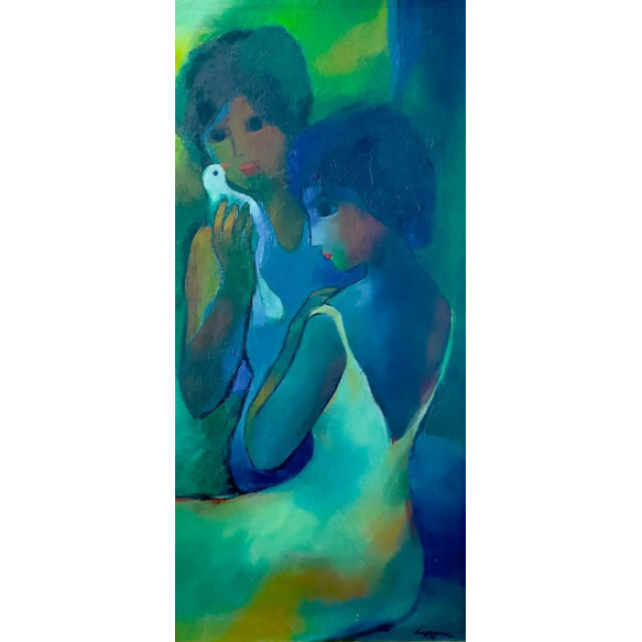 EspañolLugmar Passos - Mulheres com Pássaro - 72 x 34 cmÓleo Sobre Eucatex - Ass. Canto Inferior Direito