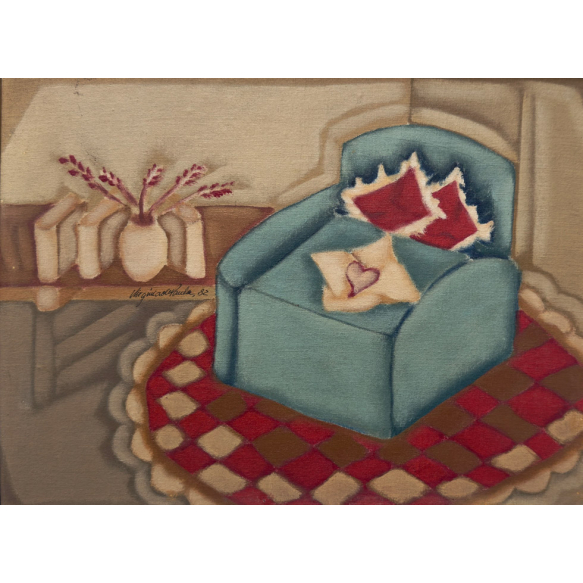 EspañolVirginia de Paula - Um Canto Para Leitura - 29,5 x 39,5 cm - Acrílica Sobre Tela - Ass. Lateral Esquerda e Dat. 1982