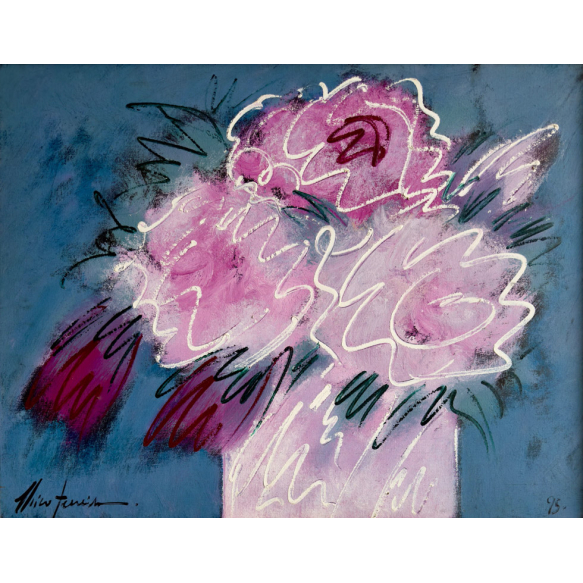 EspañolChico Ferreira - Chico Ferreira - Flores - 70 x 90 cm - Óleo Sobre Eucatex - Ass. Canto Inferior Esquerdo e Dat. 1995