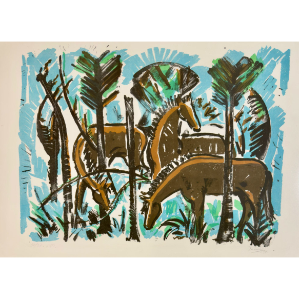 EspañolInimá de Paula - Cavalos - 49 x 69 cm - Serigrafia - Ass. Canto Inferior Direito e Dat. 1994 - Exemplar 30/37 P.A