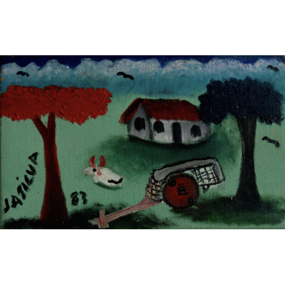 EspañolJosé Antônio da Silva - Cena Rural - 18,5 x 30 cm - Óleo Sobre Tela - Ass. Canto Inferior Esquerdo e Dat. 1983