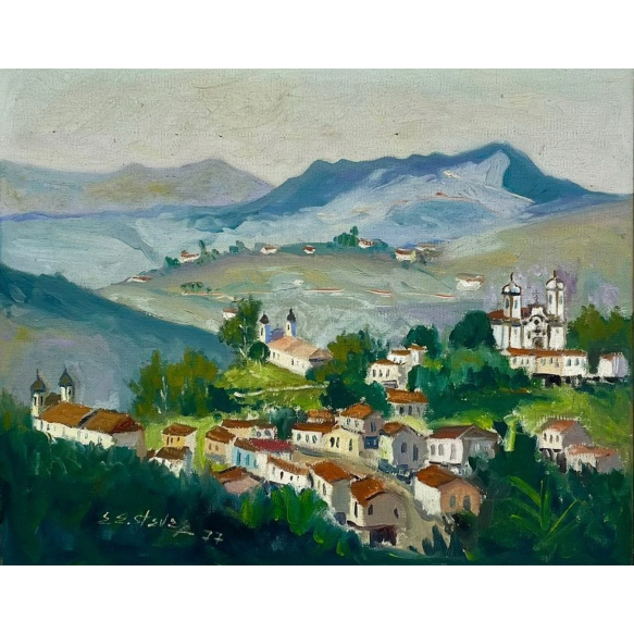 EspañolEdésio Esteves - Ouro Preto - 33 x 41 cm - Óleo Sobre Tela - Ass. Canto Inferior Esquerdo e Dat. 1977