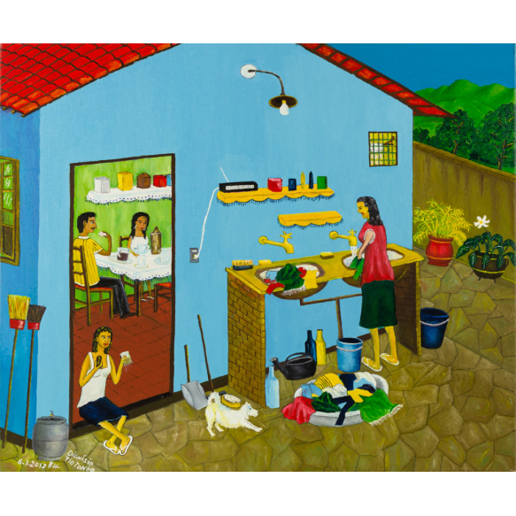 EspañolDionísio – Tio Tonho - Lavando Roupa – 50 x 60 cm – Óleo Sobre Tela – Ass. Canto Inferior Esquerdo e Dat. 2012
