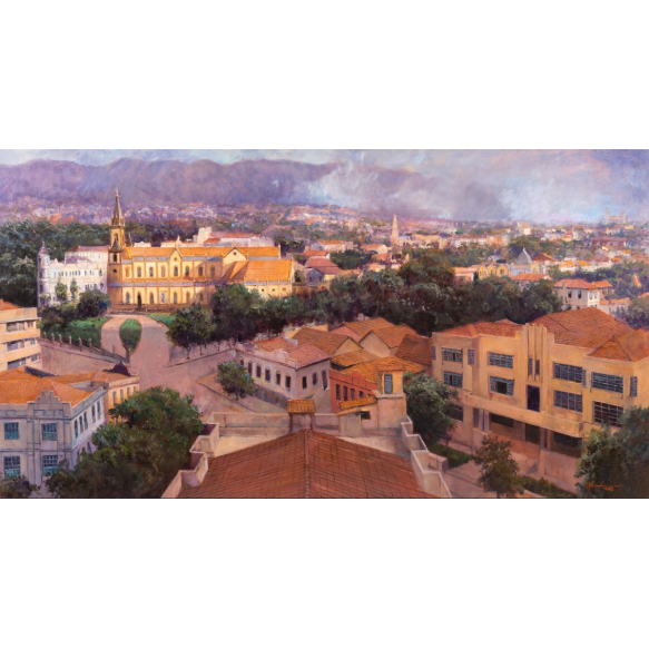 EspañolMauro Ferreira - Vista da Igreja São José (BH/MG) – Circa 1930 – 75,5 x 140 cm – Óleo Sobre Tela – Ass. Canto Inferior Direito e Dat. 2018