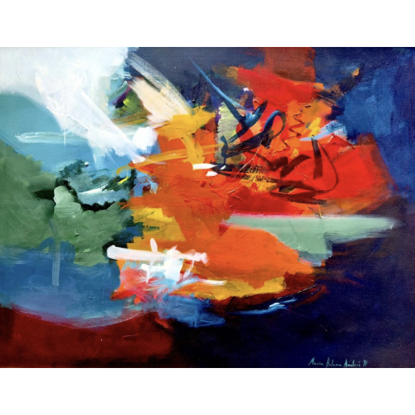EspañolMaria Helena Andrés - Dinâmica das Cores - 70 x 90 cm - Óleo Sobre Tela - Ass. Canto Inferior Direito e Dat. 1991