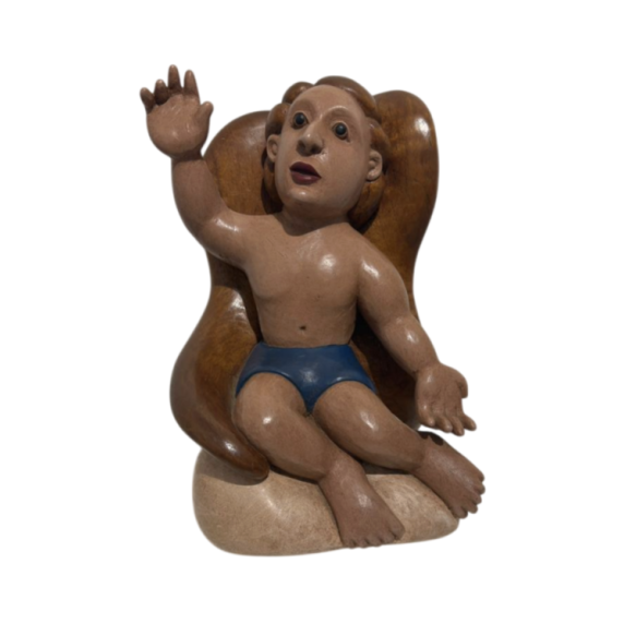 EspañolHumberto Araújo - Anjo - 30 x 21 x 12 cm - Madeira Policromada - Assinada e Dat. 1998