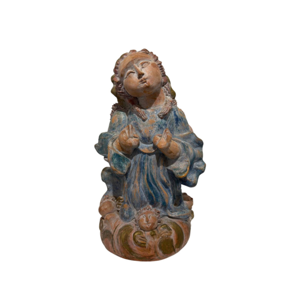 EspañolElisa Pena - Nossa Senhora com Anjos - 44 x 24 x 20 cm - Cerâmica Policromada - Assinada