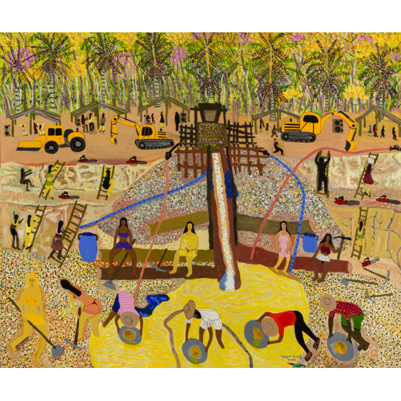 EspañolValques Pimenta - Garimpo Ilegal na Amazônia – 109,5 x 130,5 cm – Óleo Sobre Tela – Ass. Parte Inferior e Dat. 2024