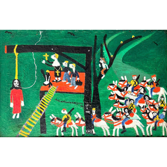 EspañolJosé Antônio da Silva - Tiradentes - 65 x 99 cm - Óleo Sobre Tela - Ass. Centro e Dat. 1950 – Pintura extraordinária deste genial artista brasileiro executada em um dos seus melhores períodos de produção.