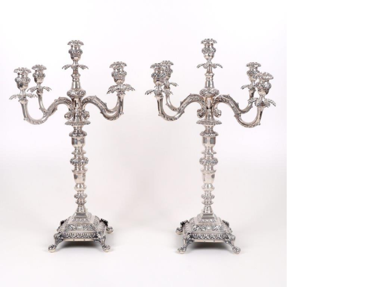 Par de candelabros em prata portuguesa, com contraste L.