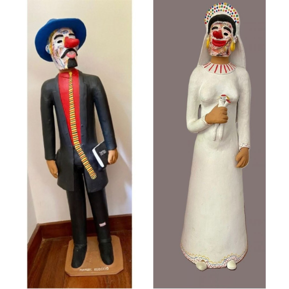 MANUEL EUDOCIO - Doutor mascarado e Noiva grávida mascarada (Figuras do Reisado) - Escultura em Cêramica Pintada - Doutor 86 x 22 x 19 cm. / Noiva 84 x 22 x 19 cm.