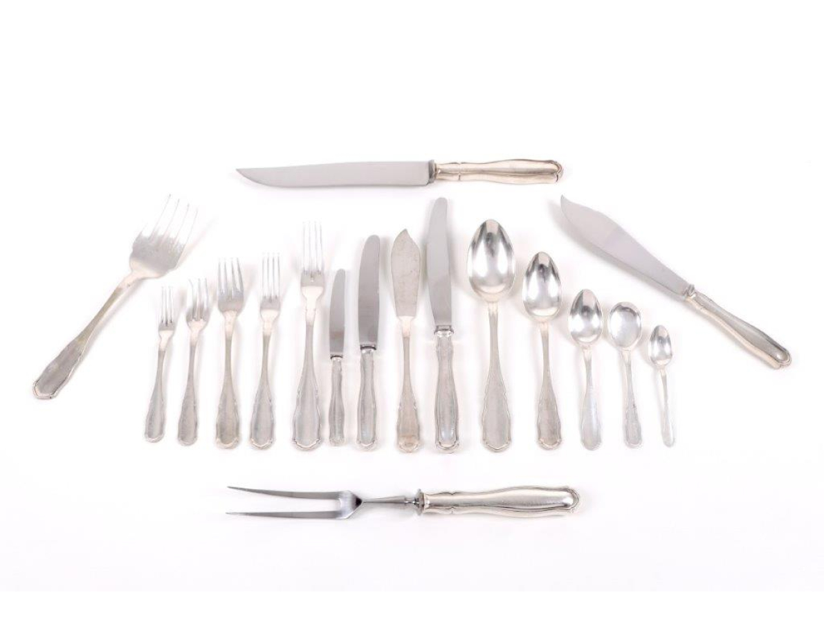 Faqueiro em prata de lei 800, contraste lua e coroa.