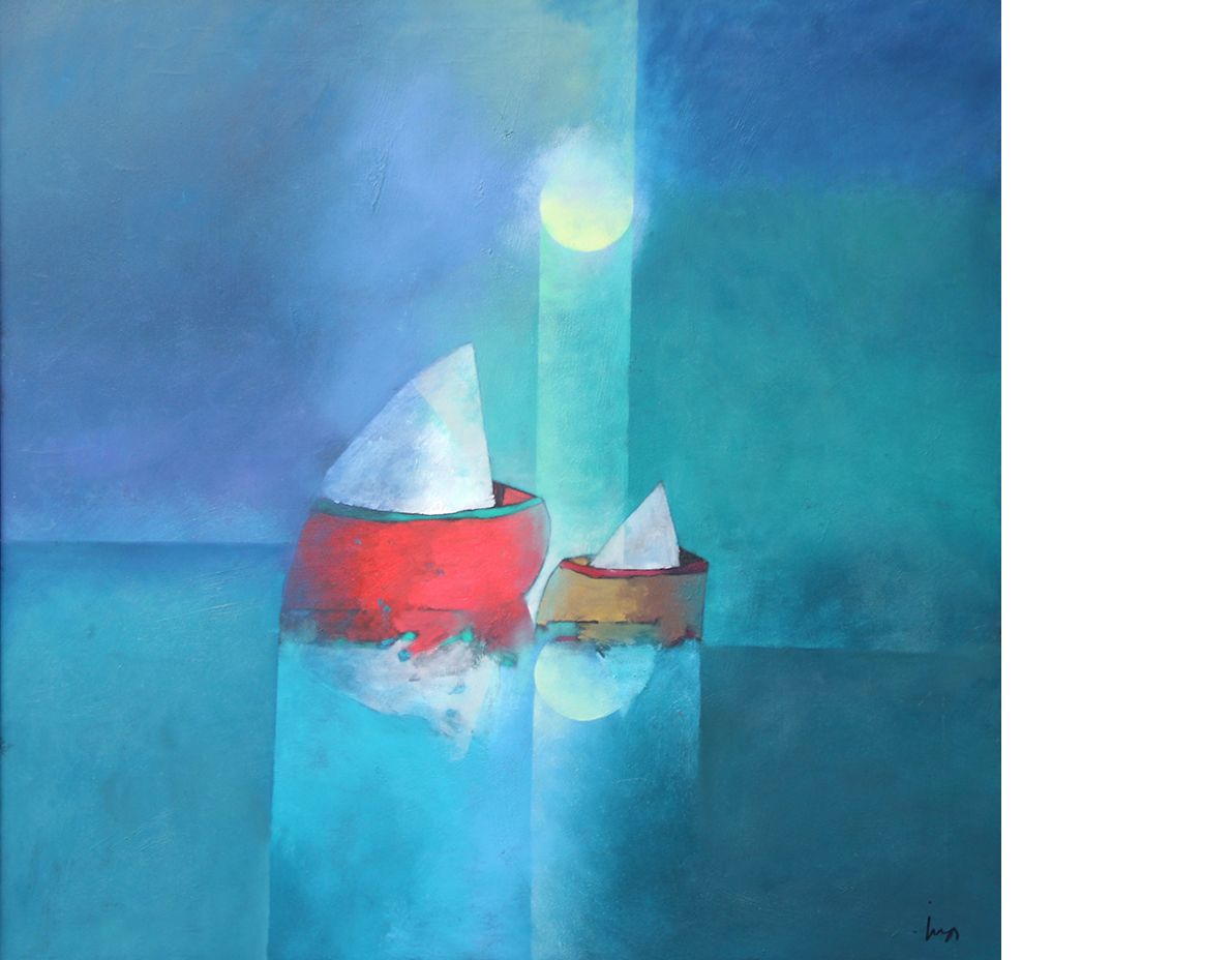 Inos Corradin - Mediterrâneo - Óleo sobre tela - 100 alt x 100 larg (cm) - acid e verso.
