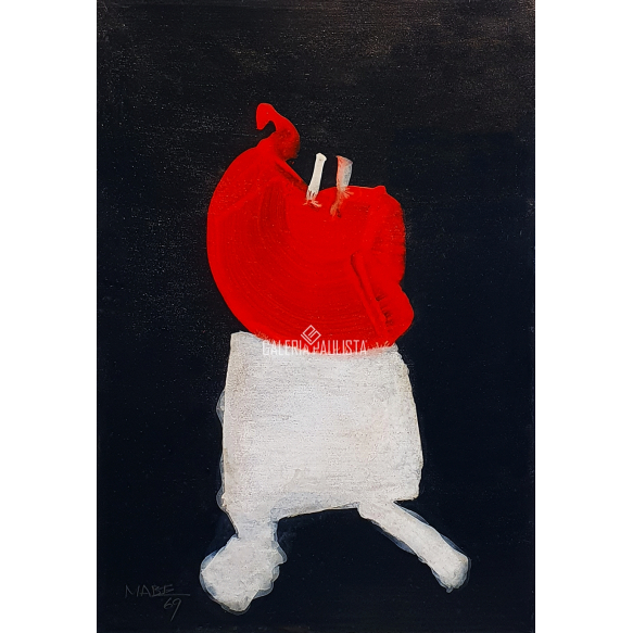 MABE "Abstrato - 1969" Oleo e Tecnica Mista S/ Duratex -Med 50x35 cm (Obra) -Assinado e Dat 69 no CIE -Acompanha Certificado do Instituto Manabu Mabe. Devidamente registrada e catalogada no Instituto. Moldura em madeira. Medida Total com a Moldura 75x60.